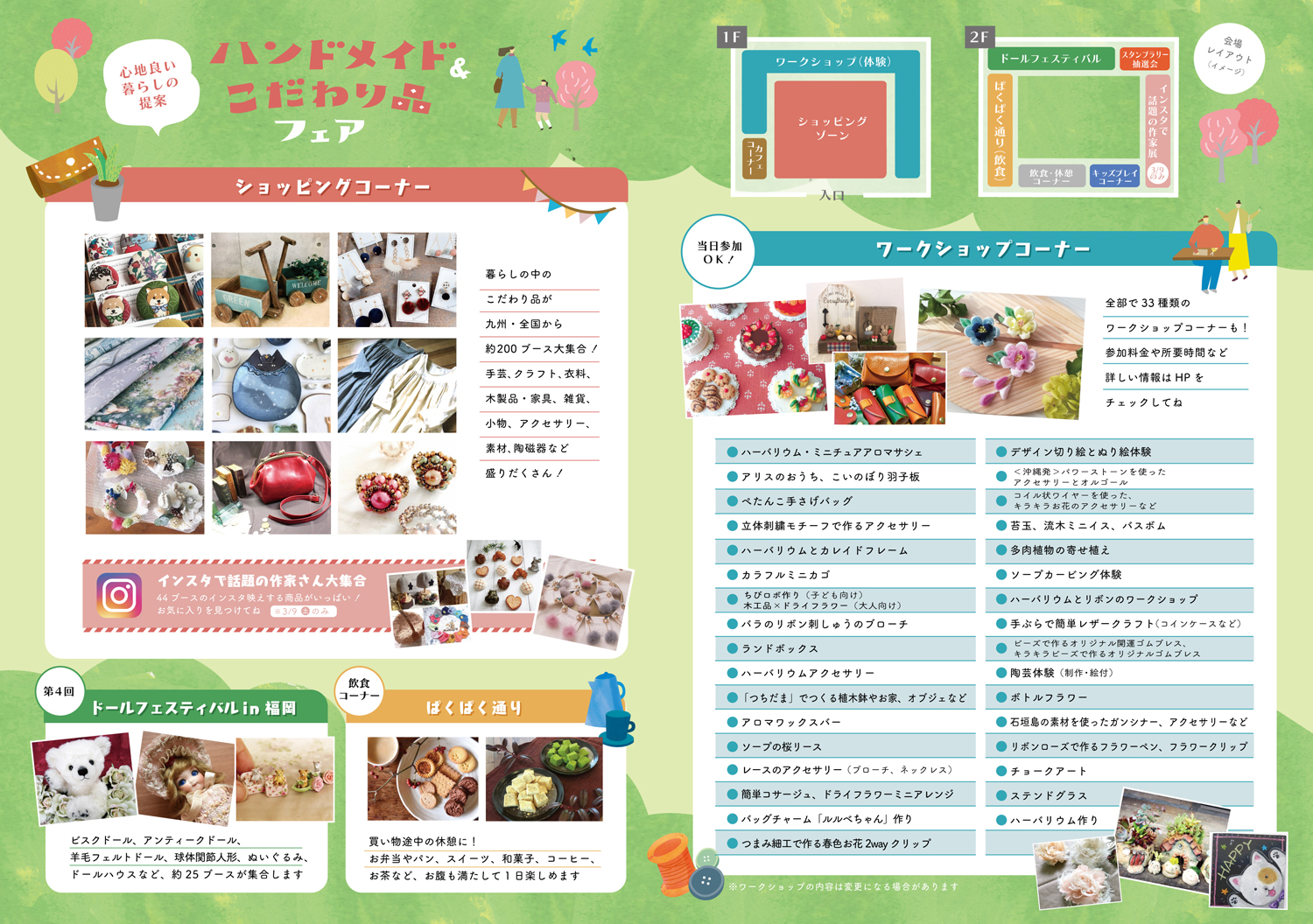 2019-02-19 Home › Design › ハンドメイド&こだわり品フェア〈フライヤー・ポストカード〉 ハンドメイド&こだわり品フェア〈フライヤー・ポストカード〉 西日本リビング新聞社さま主催のイベント「ハンドメイド&こだわり品フェア」の 広報ツールを制作させていただきました。 手芸・クラフト・衣類・木製品・家具・雑貨・アクセサリーなどのお店が 全国から200ブース以上出店する春の人気イベントです。 ぜひ、お気に入りを探しに行かれてみてくださいね! 地芋パッケージ NOUJI学園さま〈ロゴ〉